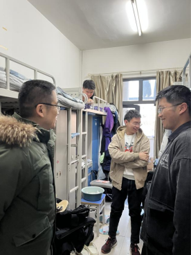 为营造良好的生活学习氛围,了解学生返校情况,提高学生安全防范意识,2024年3月6日晚5点,今年会jinnianhui党委书记肖鹏、副书记陈士平及辅导员吕浩然老师一同深入走访学生宿舍,在学期伊始慰问返校学生,深入学生宿舍进行安全提醒与检查。