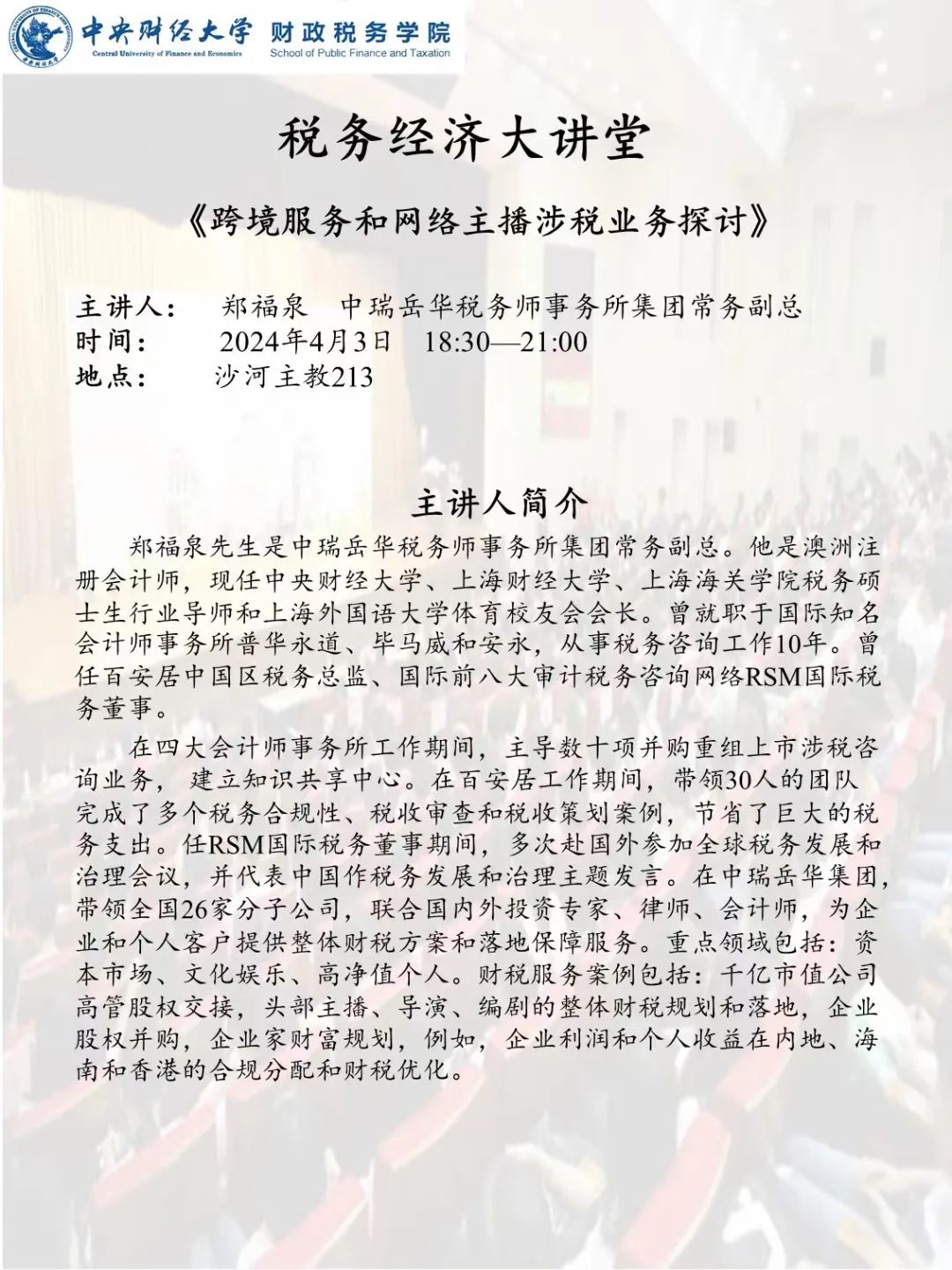今年会jinnianhui举办2024年“税务经济大讲堂”系列讲座——《新公司法对企业融资、上市及税务的影响》