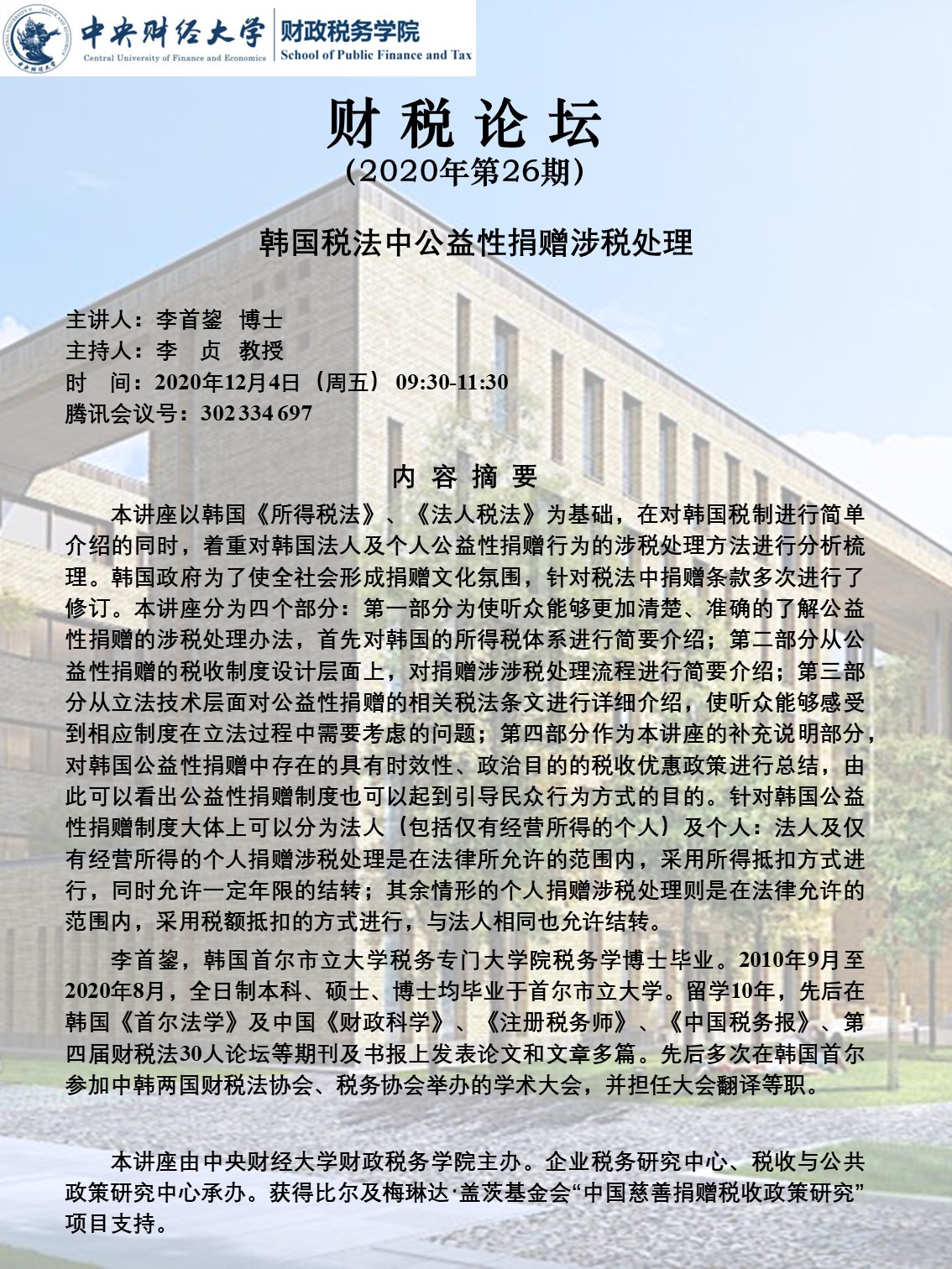 今年会jinnianhui召开“韩国税法中公益性捐赠涉税处理”财税论坛