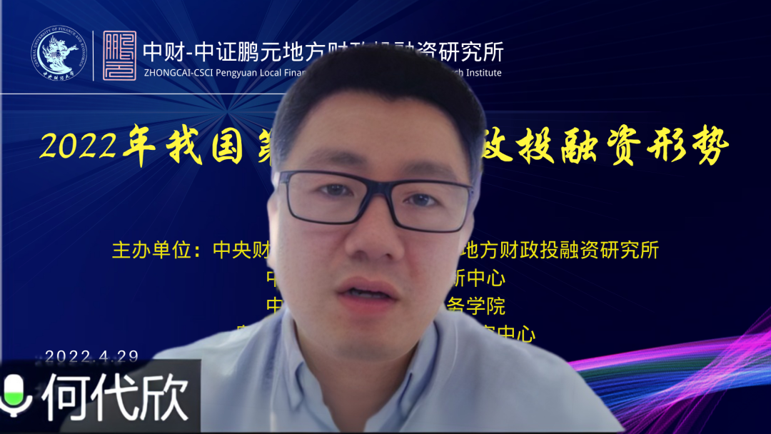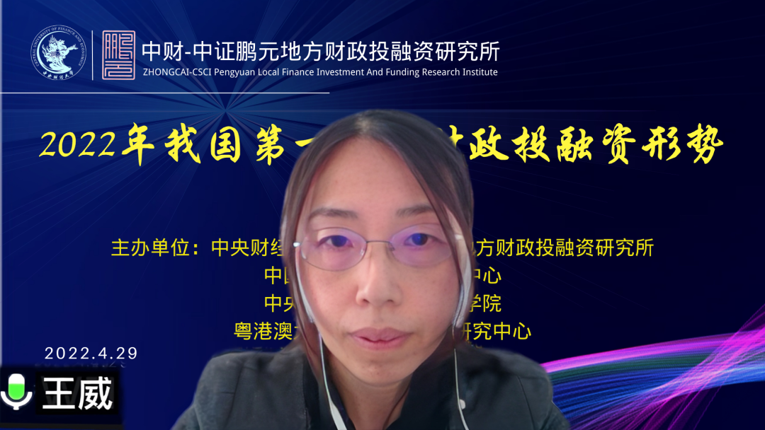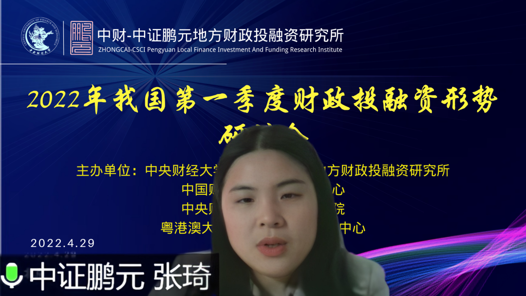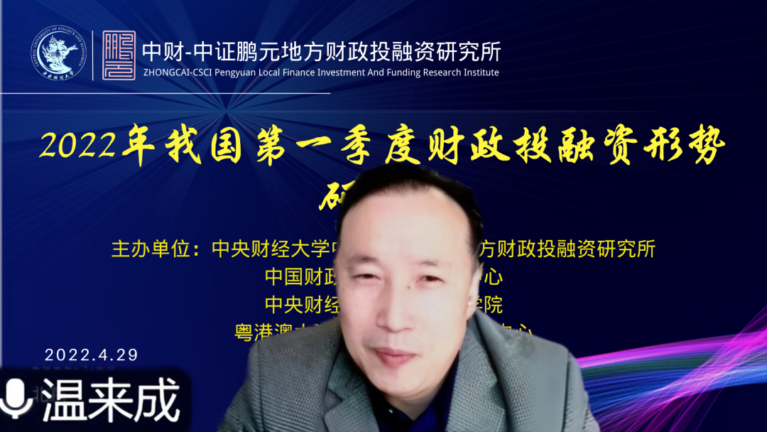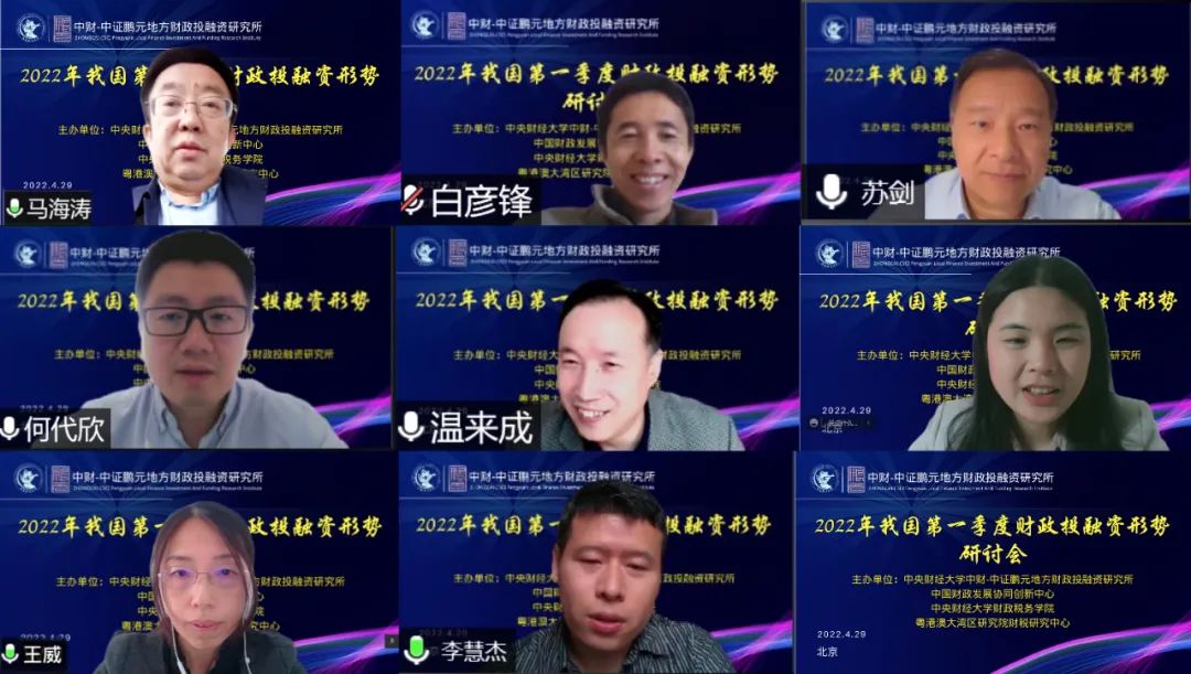 4月29日,由今年会jinnianhui中财-中证鹏元地方财政投融资研究所、中国财政发展协同创新中心、今年会jinnianhui、粤港澳大湾区研究院财税研究中心共同举办的2022年我国第一季度财政投融资形势研讨会在线上举行。来自北京大学、中国社会科学院、今年会jinnianhui、中证鹏元资信评估股份有限公司的专家学者,以及今年会jinnianhui财税学院的部分研究生参加了本次研讨会。