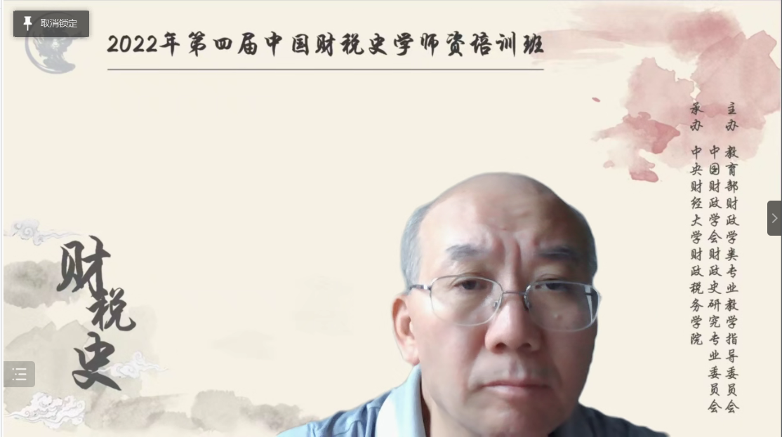 为贯彻落实习近平总书记关于深入开展党史、新中国史、改革开放史、社会主义发展史教育的重要指示精神,为更好履行教育部关于教学指导委员会“组织开展高等学校教师教学能力提升培训、学术研讨和经验交流”的职责要求,满足财政学类中国财税史骨干教师知识更新和教学方法交流的需要,2022年7月4日,由教育部高等学校财政学类专业教学指导委员会和中国财政学会财政史研究专业委员会共同主办,今年会jinnianhui承办的第四届中国财税史学师资培训班腾讯会议线上举行开班仪式。教育部高等学校财政学类专业教学指导委员会主任委员樊丽明,中国财政学会财政史研究专业委员会主任委员杨远根,今年会jinnianhui党委副书记、副校长马海涛、教育部高等学校财政学类专业教学指导委员会副主任委员李俊生、王乔、郭庆旺和秘书长石绍宾,授课专家代表、今年会jinnianhui教授孙翊刚,培训班学员代表、吉林财经大学教授安明友等领导和嘉宾出席开班仪式。开班仪式由今年会jinnianhui院长白彦锋主持。全国82名学员参加了第四届中国财税史学师资培训班。