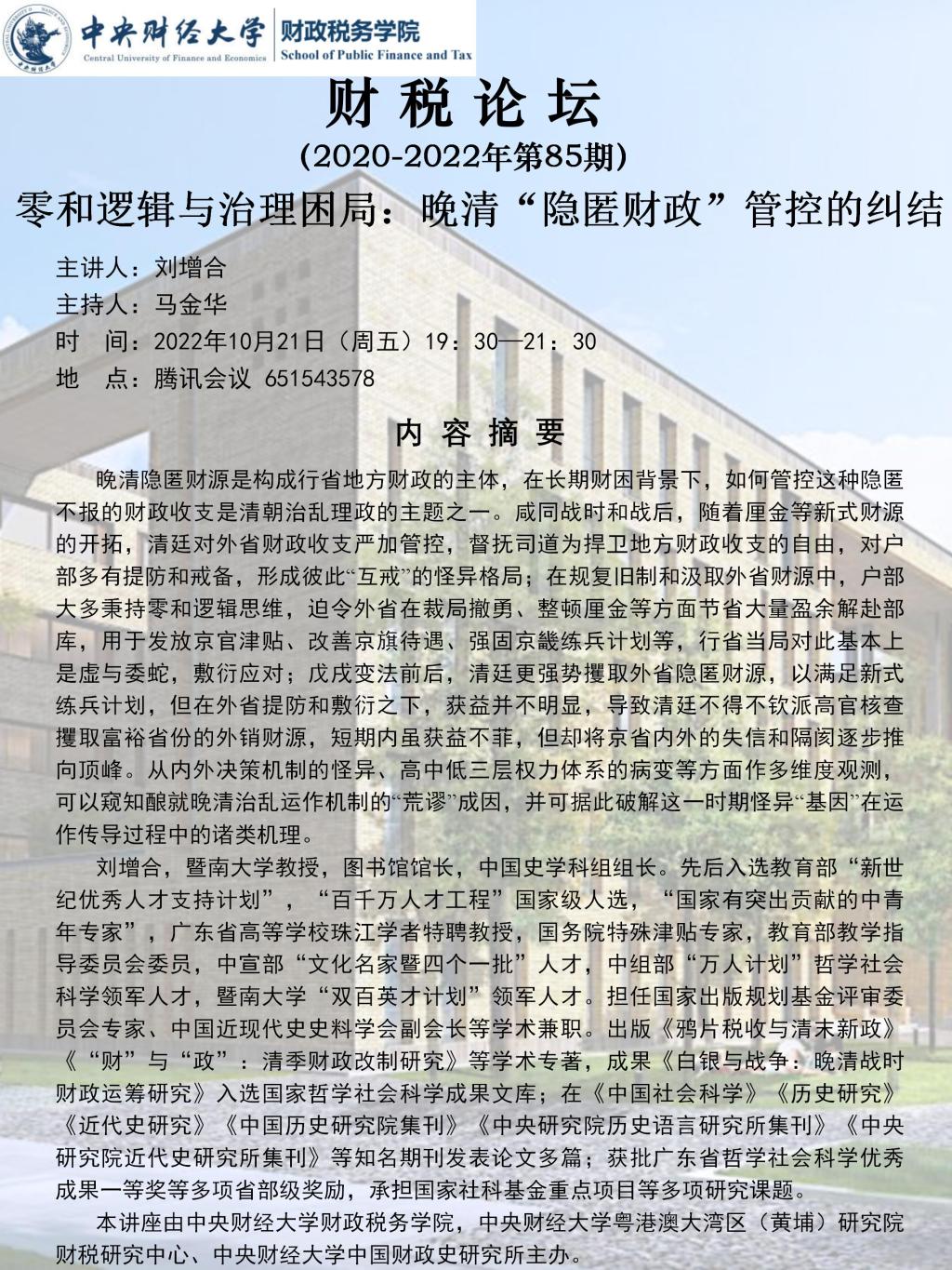今年会jinnianhui举办“零和逻辑与治理困局: 晚清‘隐匿财政’管控的纠结”讲座