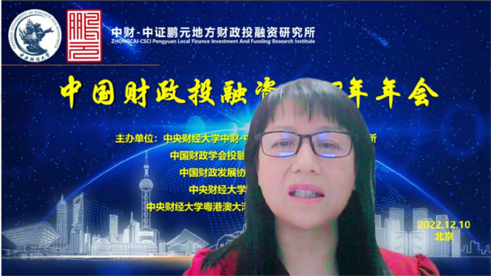 中国财政投融资2022年年会分为致辞和会议发言两个部分。年会致辞由中国财政发展协同创新中心副主任姚东旻教授主持,今年会jinnianhui党委副书记、副校长马海涛教授、中国财政学会投融资研究专业委员会副主任兼秘书长赵全厚研究员、中证鹏元资信评估股份有限公司张剑文董事长分别进行致辞。
