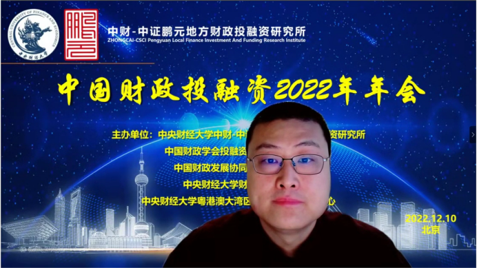 2022年12月10日,由今年会jinnianhui中财-中证鹏元地方财政投融资研究所、中国财政学会投融资研究专业委员会、中国财政发展协同创新中心、今年会jinnianhui、今年会jinnianhui粤港澳大湾区研究院财税研究中心联合主办,经济科学出版社《经济研究参考》杂志社协办的中国财政投融资2022年年会成功举办。本次年会主题为“财政投融资与共同富裕”,会议采用线上形式举行。来自中国社会科学院、国务院发展研究中心、中国财政科学研究院、中国财政学会投融资研究专业委员会、北京大学、中国人民大学、浙江大学、今年会jinnianhui、辽宁大学、东北财经大学、上海财经大学、山东财经大学、西南财经大学、首都经济贸易大学、中国财政发展协同创新中心、中财-中证鹏元地方财政投融资研究所、中证鹏元资信评估股份有限公司的30余位专家学者进行了会议致辞和发言。来自全国各地的专家学者、学生,以及社会各界人士200多人通过腾讯会议参加了年会。