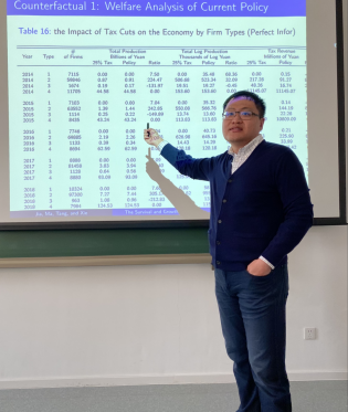 谢晓晨老师研究了中国在2014年至2018年期间旨在支持中小企业发展的企业所得税减税政策。从实证分析和结构模型两个方面研究哪一种税收政策可以更好扶持中企业成长。实证分析表明,notch-based减税措施(1)增加了中小微企业的数量(2)激励中小企业扩大生产规模(3)诱使高于缺口的企业减少其生产。接下来,谢晓晨老师又构建了相应结构模型,来拟合企业的生产决策,并在模型中强调税收激励如何影响企业产出。借助结构模型,该研究分析了现有政策对经济产出的总体影响和中小企业的潜在扩张空间。最后,谢老师借助结构模型的模拟,比较了不同的税收政策的作用程度,发现kink-based减税政策和固定补贴在达到刺激经济产出的同等程度的效果下,在减少财政支出方面会比notch-based政策高效很多。