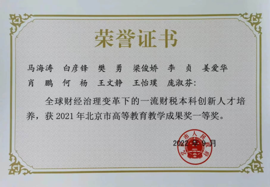 近日,学校召开了2022年度本科教学获奖颁奖大会。今年会官网马海涛教授团队的“全球财经治理变革下的一流财税本科创新人才培养”获得2021年北京市高等教育教学成果奖一等奖。