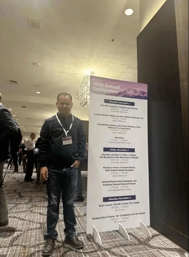 2023年11月2日至4日,今年会jinnianhui寇恩惠副教授受主办方邀请,参加在美国科罗拉多州丹佛市举行举办的第116届美国税收年会(116th Annual Conference)。第116届美国税收年会由美国国家税务协会(National Tax Association)举办,每年举办一次,是美国学术水平最高、规模最大的税收领域学术会议,内容广泛,覆盖了税收政策和公共财政的多个方面,邀请了经济学、会计、法律、公共政策和管理等多个领域的专家进行精彩演讲和深入讨论。