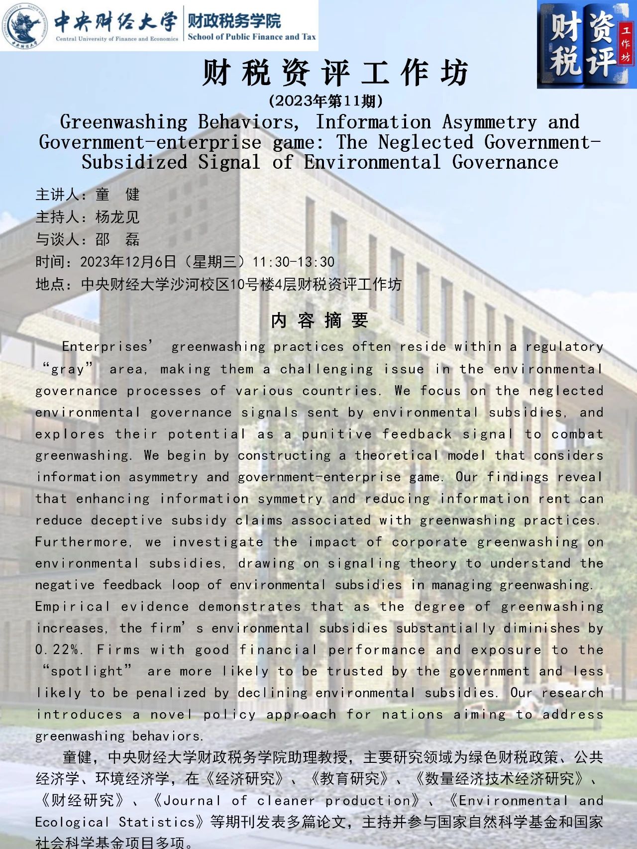 【财税资评工作坊】2023年第11期