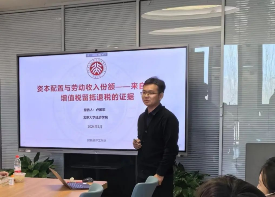 近日,第13期财税资评工作坊在沙河校区10号楼顺利举办。北京大学经济学院财政学系博士研究生卢国军作为本次工作坊的主讲嘉宾,进行了主题为“资本配置与劳动收入份额——来自中国增值税留抵退税的证据”的学术报告。今年会jinnianhui院长樊勇和多名学院师生参会,本次讲座由今年会jinnianhui邵磊老师主持。