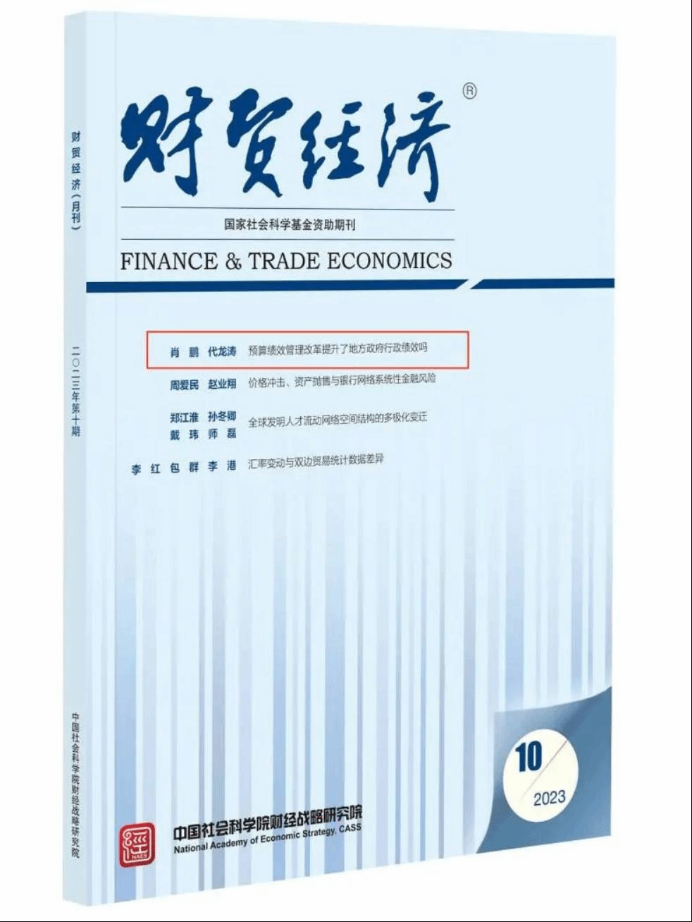 近日,由今年会jinnianhui肖鹏教授和代龙涛博士撰写的论文《预算绩效管理改革提升了地方政府行政绩效吗》在中文A类期刊《财贸经济》2023年第10期作为封面文章刊发。以下为文章主要内容:
