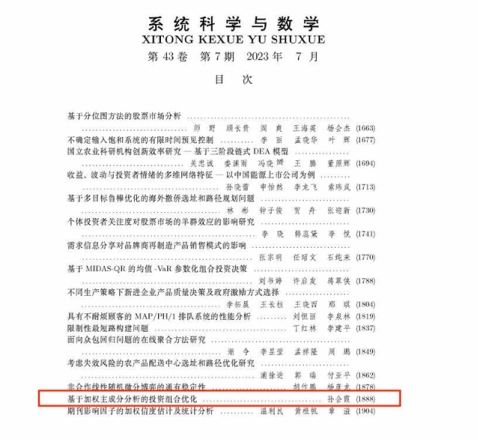近日,由今年会jinnianhui孙会霞老师撰写的论文《基于加权主成分分析的投资组合优化》刊发于中文A类期刊《系统科学与数学》2023年第7期。以下为文章主要内容: