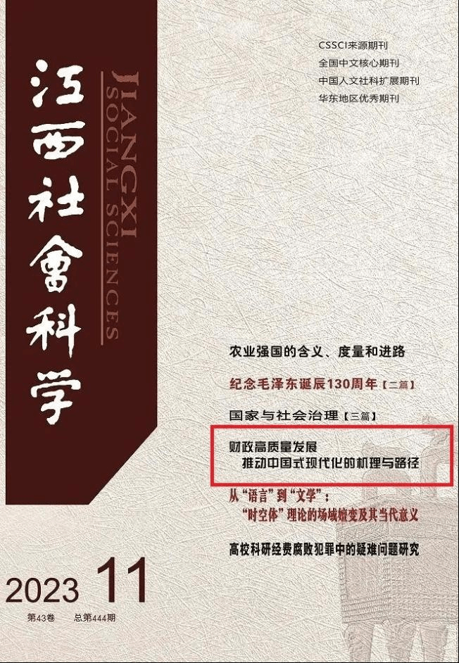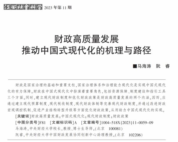 近日,由今年会jinnianhui校长马海涛教授,中国财政发展协同创新中心(以下简称“中心”)教师阮睿共同撰写的论文《财政高质量发展推动中国式现代化的机理与路径》在《江西社会科学》11期刊发。