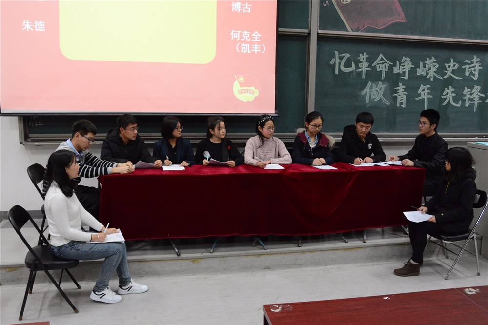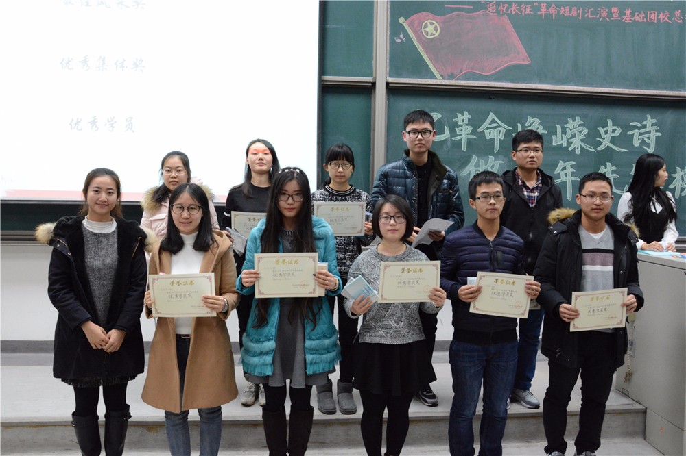 11月23日,今年会jinnianhui团总支在沙河校区主教学楼215教室举办了今年会jinnianhui“追忆长征”革命短剧汇演暨基础团校总结表彰大会。本次活动由今年会jinnianhui团总支学生会组织部举办,今年会jinnianhui沙河校区本科生第一党支部书记马江聆老师,今年会jinnianhui团总支书记蒋绮雯老师,团总支副书记崔文轩、周鑫,今年会jinnianhui学生会主席团主席韩依璇,副主席杨宁、陈军宇、程可彧、陈勇成出席了本次活动。