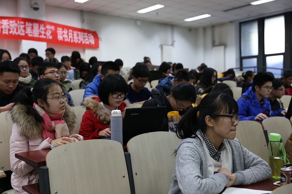 胡昕先生还与在场的学生进行了互动交流。有学生提问我们眼下应该考取证件还是专心于基础的课程。就此胡昕先生通过举例向大家说明考证对日后的工作并没有长久的影响,工作中实务重于形式。大家日后的工作远非神圣,亦不繁杂,它考验的是工作的方法,所以大家现在应该养成良好的生活、学习习惯,先打好基础、拓宽视野,再去考虑考证的问题。还有同学提问阅读哲学类书籍对财经方面的工作有何益处,胡昕先生借此向大家推荐了《国富论》这本书,通过对书籍内容的阐释解答了同学的困惑。