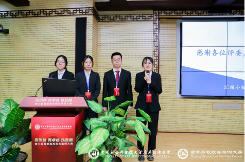 中国社会科学院大学应用经济学院孙晓晖老师对赛制安排进行详细说明。大赛分上午的案例分析及PPT制作和下午的成果展示及答辩两个环节,每所高校的两支参赛队伍通过抽签进入A组和B组,并按抽签顺序进行15分钟的展示和5分钟的答辩。大赛题目源自世界知名四大会计师事务所的真实案例,深入考察参赛学生的税务专业知识水平、案例分析、团队协作和现场展示能力。各组评委从税务知识掌握与应用、PPT制作、展示及答辩表现三个角度进行综合打分,根据每队分数进行组内排名,以此确定最终获奖队伍。经过上午三个小时紧张、有序的案例分析和准备,各院校参赛队伍在下午的成果展示和答辩环节,同心协力,精彩纷呈,展现了新时代青年税务学子的精神风貌。