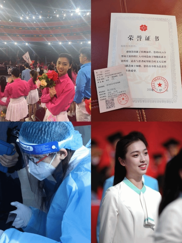 除此之外她还热心公益。在2022年北京市丰台区疫情严峻的5月,她冒着感染风险主动跑到社区居委会帮忙,耐心为每天排在门外等待解除弹窗的大爷大妈排忧解难。在北京垃圾分类刚刚推行之时,她又到社区垃圾站帮助引导民众正确分类并自愿协助保洁阿姨对错误分类的垃圾进行重分类。她多次参与线上线下多种形式的支教活动并加入第二十五届研究生支教团,参与无偿献血并自愿加入中华骨髓库……她的青春与党和国家的重要历史时刻同频共振,也与人民紧紧贴在一起。