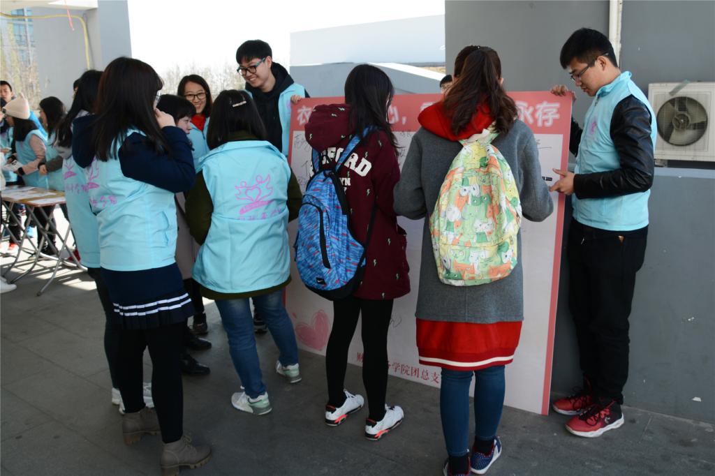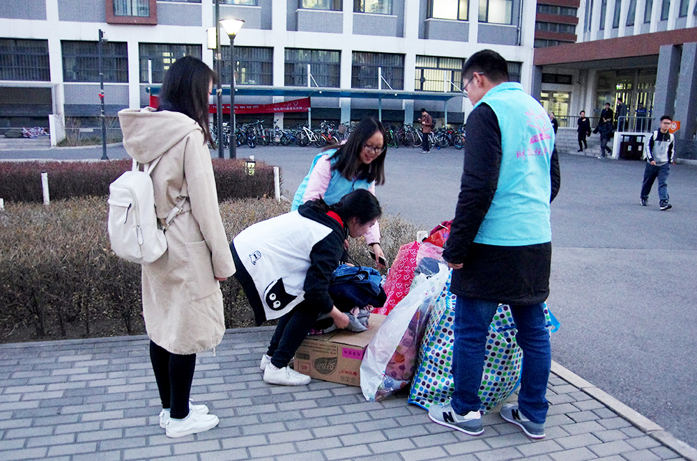 3月8日中午,今年会jinnianhui团总支学生会青协的同学们在沙河校区东、西区食堂门口举行了现场捐衣活动,团总支学生会秘书处、组织部的同学协助举办了此次活动。身着蓝色志愿者马甲的青协同学们早早摆放好了桌椅、易拉宝和签字版,等待捐衣同学的到来。随着下课铃声的响起,向食堂走来的同学渐渐多了起来,青协的志愿者们开始向经过的同学发放宣传单,热情介绍此次捐衣活动。很多同学前来咨询活动的详细信息,青协的同学们都一一给予了耐心的解答。经过咨询后,许多同学立刻赶回寝室整理准备捐赠的衣物,随后将它们带到了捐赠现场。参与捐赠的同学和老师纷纷在签名板上留下自己的签名,作为自己爱心的见证。3月9日下午,捐衣活动继续在东区、西区同时进行。在青协志愿者们的宣传下,有更多的同学将自己闲置的衣物捐赠出来。仅仅一个下午,空地上就堆满了衣物。当天晚上,财税学院团总支学生会的同学们共同将在西区收集的衣物搬到东区。尽管衣物沉重,但所有参与活动的同学们都不觉疲累。3月10日、11日,活动持续进行,不断有同学前往捐衣点捐出衣服,用自己的实际行动表达对此次活动的支持。