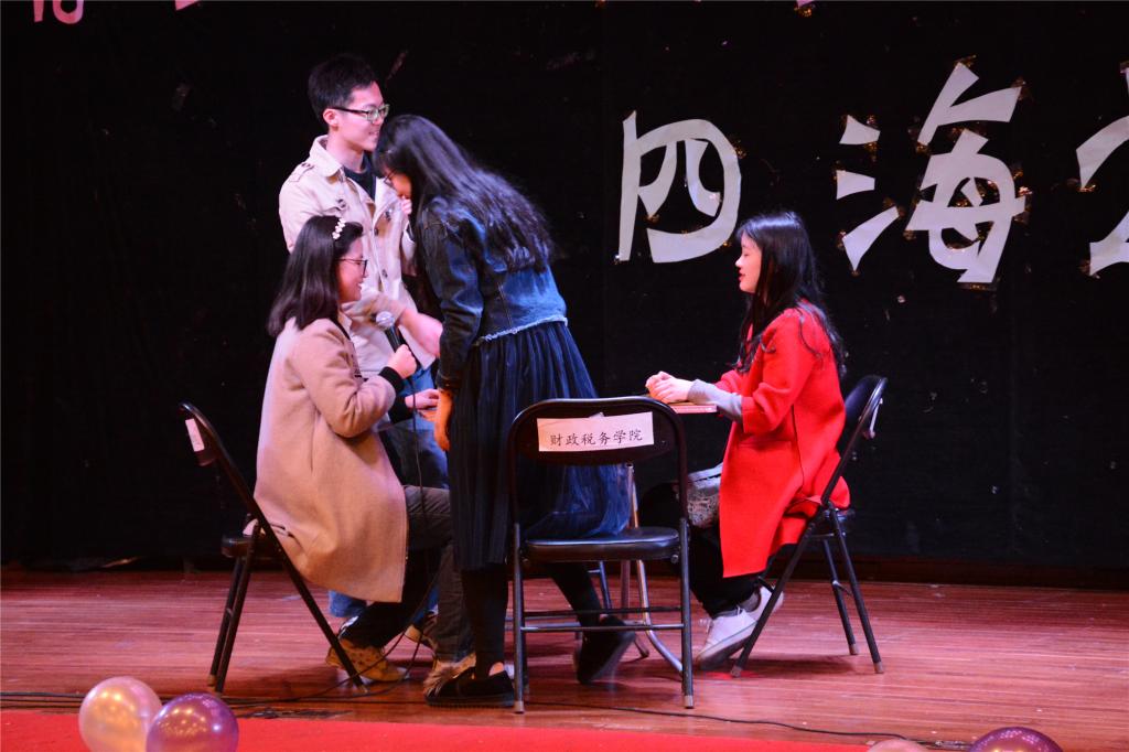 在主持人宣布活动开始后,首先由来自不同地区同学们为大家带来富有浓郁地方特色的节目,第一个出场的是汇集黑吉辽三省的“我在东北打粗溜滑”组,西装墨镜,身材挺拔的东北人在演唱改编歌曲《全世界都在说东北话》的同时,演出了极具地域特色的二人转和秧歌,手中红色的手绢转出了中国北方地区劳动人民长期创造积累的艺术风采;紧接着,由“河北和他的两个洞”和“西北望射天狼”组的同学们分别表演了相声和歌曲;来自江浙沪皖的“全场包邮队”带来了精彩的小品《老巷故事》,将传统与现代紧密结合,通过极具张力的表演引得全场喝彩连连,掌声阵阵。
