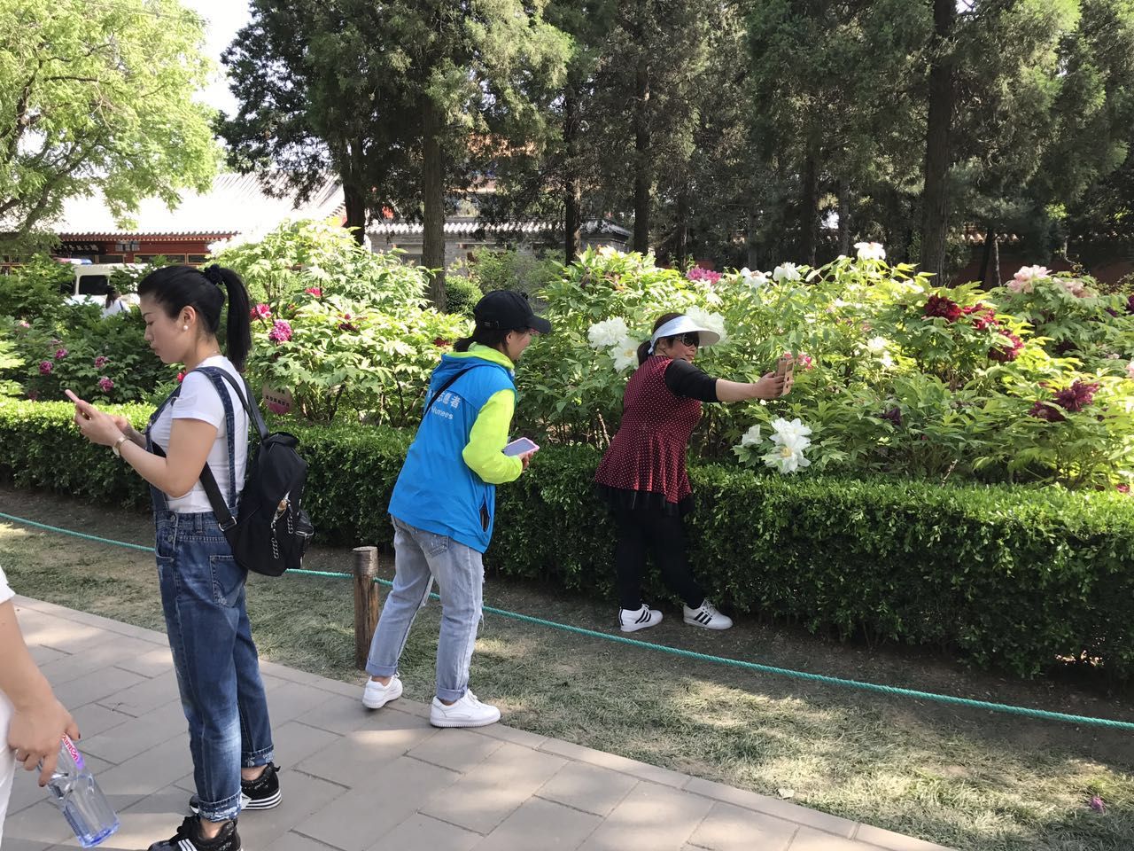 志愿者们集合后,拍摄了集体照片,本次志愿活动圆满结束。景山特色志愿,不仅维护了公园游览旺季的秩序,减轻了工作人员的负担,更为盛开的花撑起了文明的保护伞!