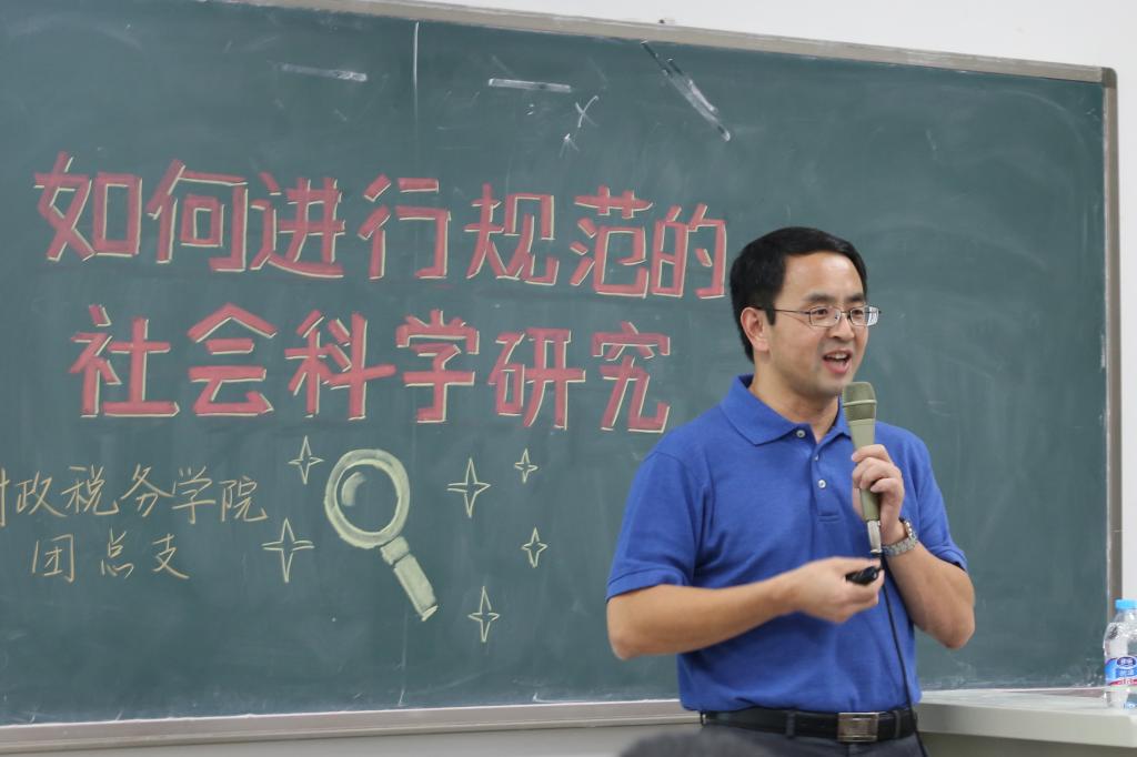 5月23日晚,今年会jinnianhui在沙河校区主教407举办了“如何进行规范的社会科学研究”为题的主题讲座,讲座邀请到了美国阿肯色州立大学教育学教授高明晖先生为中财学子讲授社会科学研究设计的逻辑。今年会jinnianhui党委副书记宋立岩老师、副院长任强老师、院长助理汪昊老师、梁俊娇老师、杨龙见老师、蒋绮雯老师等出席了本次讲座。