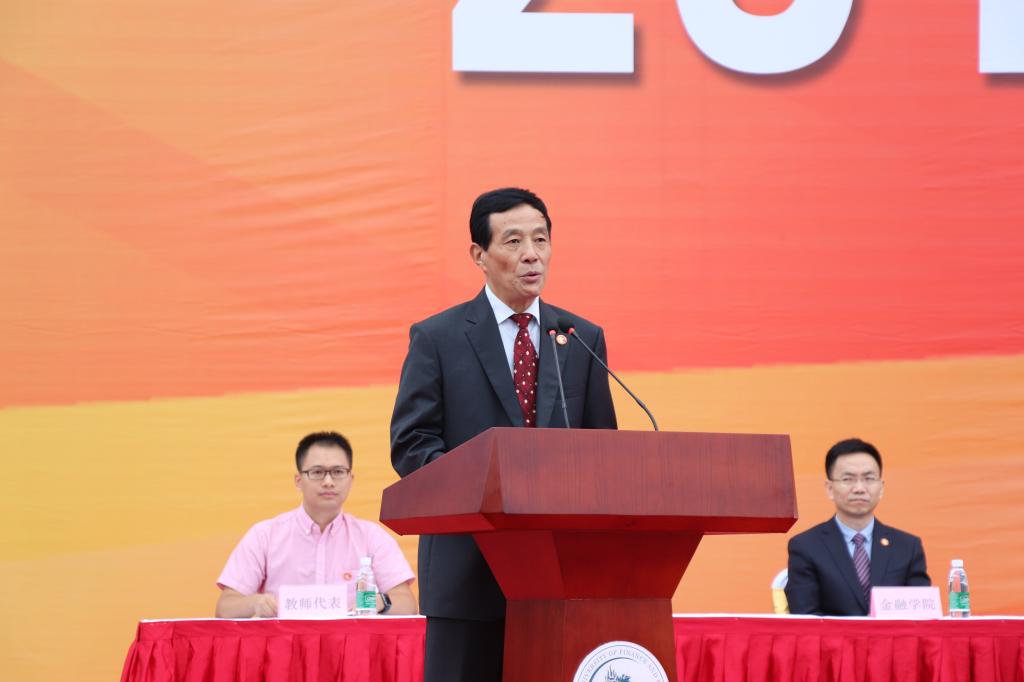 随后,由教师代表陈运森副教授进行发言。陈教授结合热会热点事件与亲身经历,突出“遥远的未来已经到来,变化已经开始”主题。并且针对“如何能够恒无止境持续进步”的问题展开对同学们如何为人,如何为事和如何为学的殷殷教导。他提出,同学们要谦卑不自我,谨慎不张扬,并且培养同理心。同时要学会接纳不好的人事,从容地拥抱失败。最后要追求长期能够提升个人认知,道德观的知识,并且做到批判性学习,思考性学习,深度学习。
