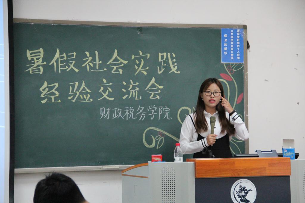 第一位分享团队经验的是税收16的杨宇轩同学。在这次暑假社会实践活动中,作为校级普通标的队长,他带领他的团队走访了北京,内蒙古,河北三省,参观了北工大附属中学,国家博物馆,抗日战争纪念馆多地,和工作人员与学生密切交流,虽然经历了活动开展过程中的一系列的困难,但最终仍取得了丰硕的实践成果。从实践准备,到撰写标书,再到实践开展,以及最后的撰写报告,他们用自己的一步一步的实践经历告诉我们:只有踏踏实实的努力,才能换得成功的硕果。