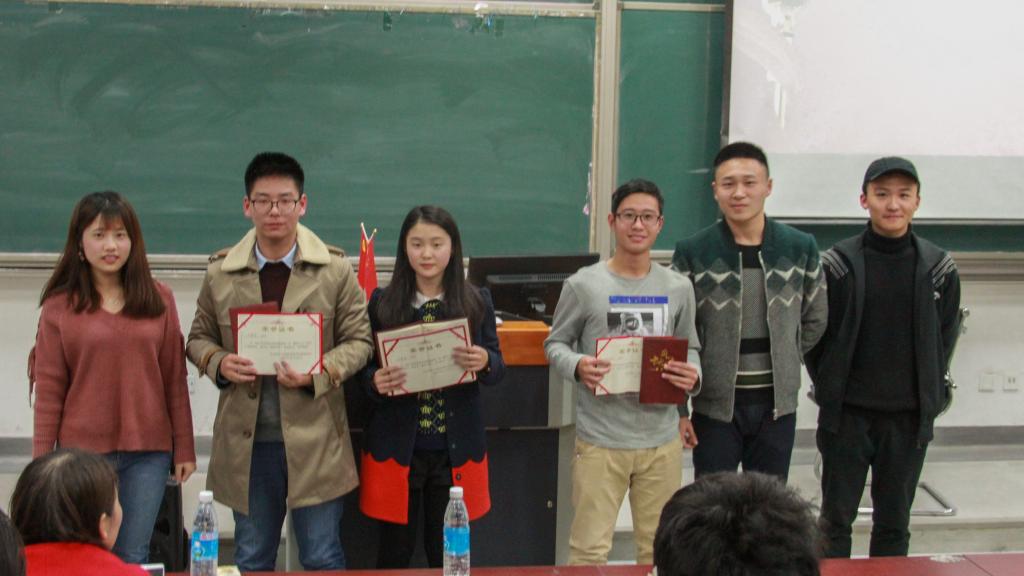 一分钟陈述结束之后,由组织部王子卓同学宣布最佳代表人选,安徽省代表严春浩、贵州省代表柳连源、江苏省代表王誉桦入选并上台领奖,合影留念。最后,主持人刘天颀宣布本次今年会jinnianhui十九大团课暨基础团校模拟人大活动圆满结束。