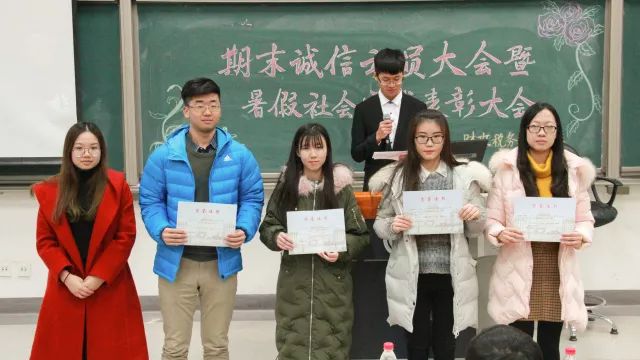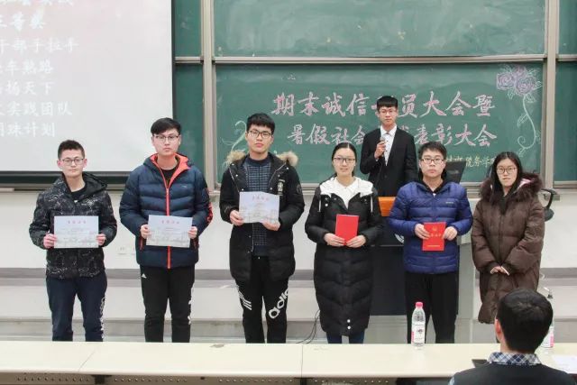 2017年12月27日星期三晚8:30,今年会jinnianhui在今年会jinnianhui沙河校区东区主教219教室举办了期末诚信动员大会暨暑期社会实践表彰大会。今年会jinnianhui党委副书记宋立岩老师、学生工作办公室主任于来老师、本科生第一党支部书记王乐天老师、团委副书记陈颖老师、2017级本科生辅导员徐燕妮老师出席本次活动。今年会jinnianhui2017级全体新生和2016、2015级学生代表参加。