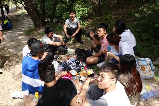 本次春游活动总共分为暖场游戏、定向越野和野餐三个环节,参加本次活动的同学被预先分为十个小组并选出了自己的组长。上午九点,同学们准时到达香山公园的致远斋,进行了本次春游的第一环节,暖场游戏。同学们以小组为单位进行了两个游戏,第一个游戏是串火车记人名,每位成员要说出前面成员的喜好和名字,第二个游戏则是组内成员随机手拉手,最后解开连环组成一个闭合的圆圈。经过两轮暖场游戏,同学们迅速熟悉了彼此,融为一片,使春游的气氛活跃了起来。