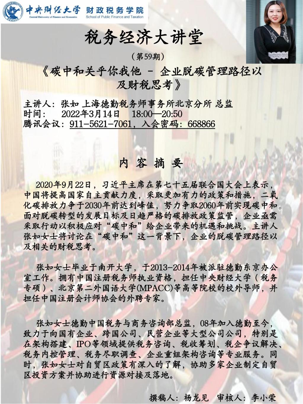 【税务经济大讲堂】《碳中和关乎你我他–企业脱碳管理路径以及财税思考》