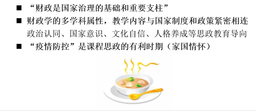 这学期,我结合学校推的“时雨课堂”,专门为学生讲了一个“疫情防控、财政支出和大国担当”的微课,也就是,在讲完支出之后帮同学们梳理一下,在疫情防控之下,我们前面所学过的财政支出的理论,和我们财政支出的实践,和我们财政支出中呈现的这个大国担当的这样的思想,是如何关联在一起的,从而将理论、实践和课程思政紧密结合在一起,就像李贞老师刚才说的那样。